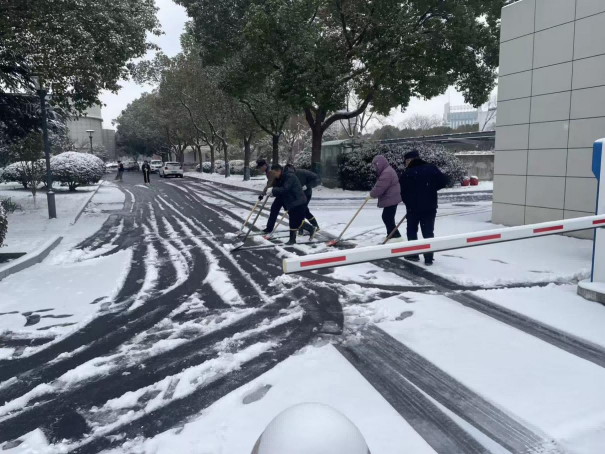 1月20日上午,安全保卫处组织人员力量,及时清除室外区域的积雪,确保人员进出安全。