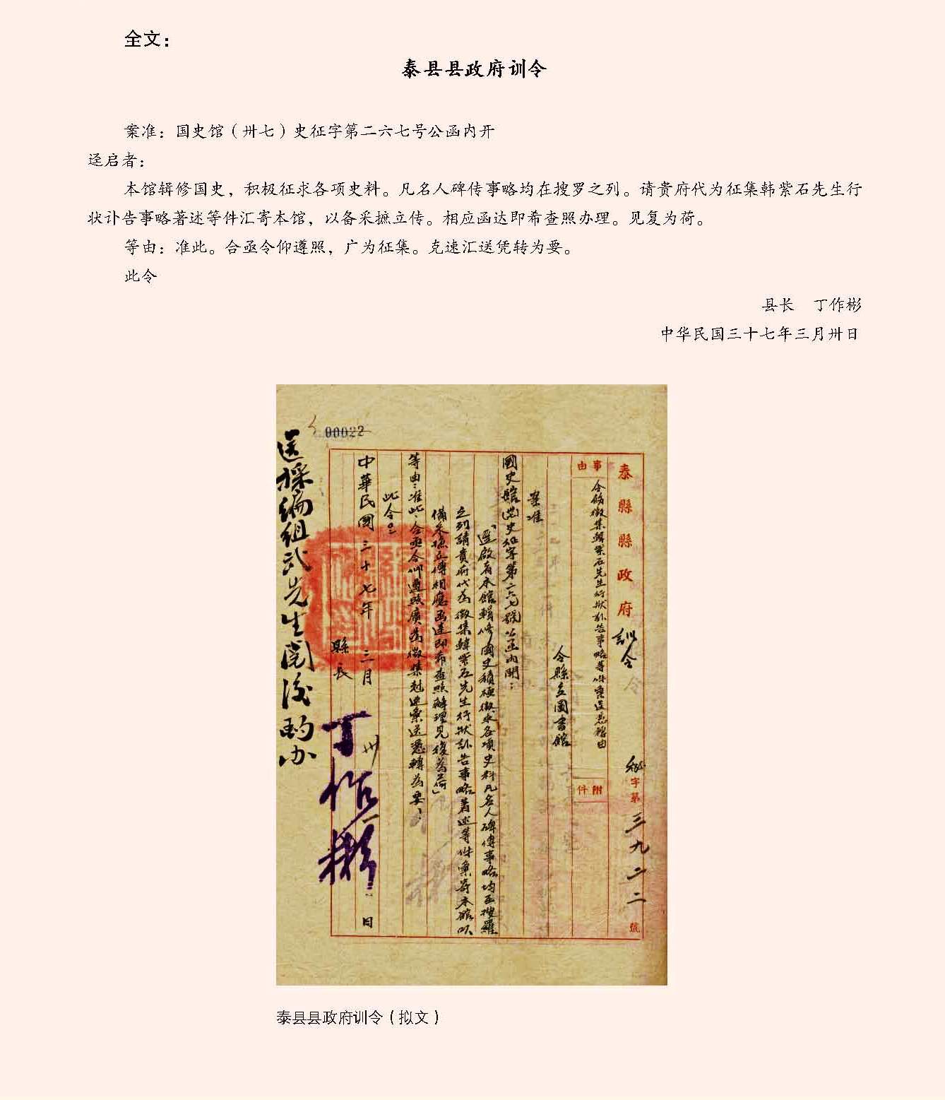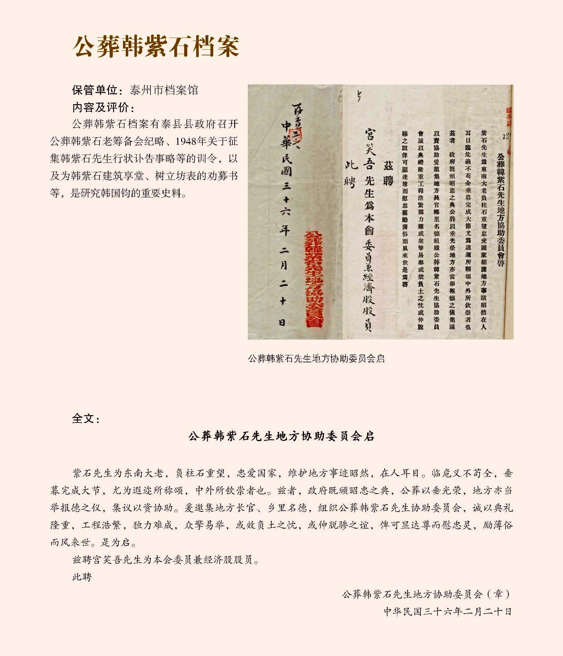 公葬韩紫石档案