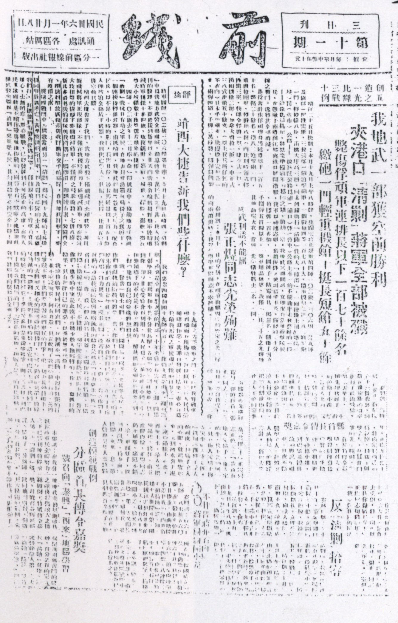 夹港战斗纪念碑位于靖江市新桥镇夹港汽渡西侧。 1947年1月19日,国民党整编第四师一○二旅三○六团与省保安旅一部及还乡团等,由生祠堂出动,经姚大圩、高山桥,向四墩子、夹港口行进,沿途抢劫百姓。行至夹港口休息时,被埋伏于此的靖江县独立团合围。此战,独立团俘敌170多人,毙、伤敌20多人,缴获二八炮1门、轻重机枪10挺、长短枪152支、子弹2万余发。 军分区的《前线》报 夹港战斗被誉为“创敌后地方武装歼敌正规军之范例”。靖江县独立团受到华东军区、苏中军区和分区的通令嘉奖,延安电台、莫斯科电台连续报道了这场战斗,《前线报》赞誉靖江县独立团为“苏中第一团”。 1987年7月,在夹港战斗胜利40周年之际,靖江县政府在战斗遗址立碑纪念。